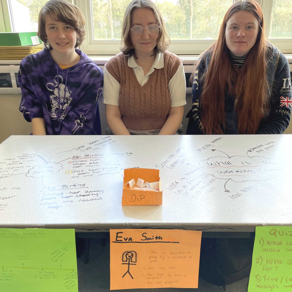 The Year 11 student said “I love the way we worked in this lesson. I was engaged throughout and enjoyed working with my group to find the information we needed for our stall. To then have the freedom to present it in a format we chose made sure that we were further invested in our learning. The relay at the end was really good fun and I certainly went home remembering key quotes, analysis and information that I didn’t know before.”